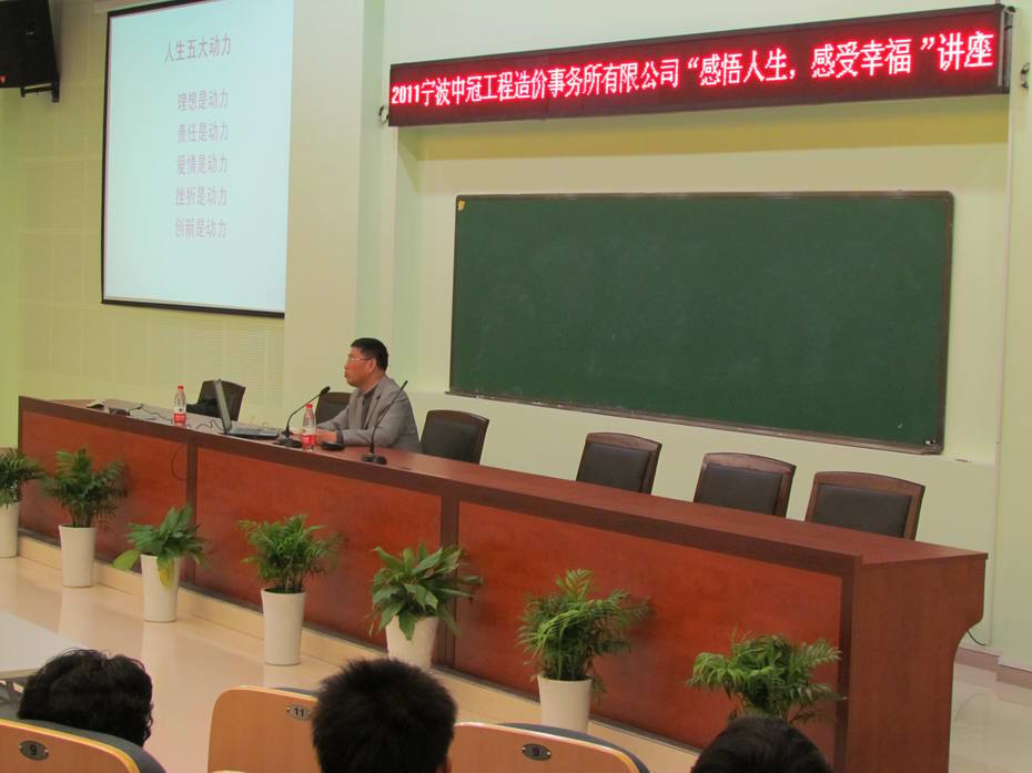 4月8日晚上,我司舉辦“感悟人生 感受幸?!睂n}講座。講座邀請了中共寧波市委黨校行政管理教研室主任張榮昌教授進(jìn)行了專題講授。公司全體員工聆聽了此次講座。